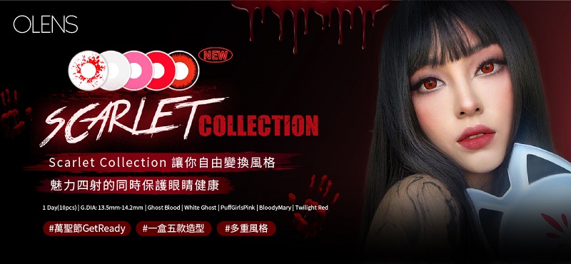 萬聖節就要到了,你準備好了嗎?你想要化身成什麼角色呢?是神秘的吸血鬼伯爵還是可愛的粉紅泡芺女孩?萬聖節的造型不只是服裝和化妝,眼睛也是很重要的一部分,OLENS已經幫你想好了!最新推出的Halloween 主題隱形眼鏡 – Scarlet,一盒就能讓你享受5種不同的風格,每種風格都有2片隱形眼鏡,讓你隨時隨地換上不同的眼神。而且,它安全又舒適,保持你的眼睛既美麗又健康,讓你玩得盡興又放心!